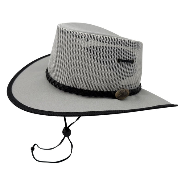 TheJacaru 104SE Bush Breeze Camperhat is a Special Edition of our popular canvas style and only available in Grey. Constructed from a durable, lightweight canvas and crowned with mesh for maximum ventilation and comes with a chinstrap. Keeping it cool in the height of summer!